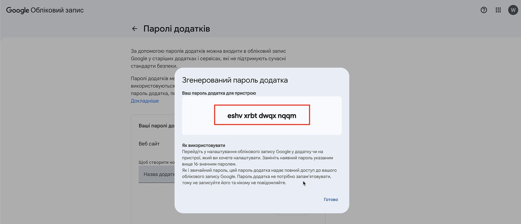 Скопируйте полученный пароль и добавьте его в настройки SMTP вашего сайта. Если вы не уверены, как это сделать, передайте данные разработчику вашего ресурса.