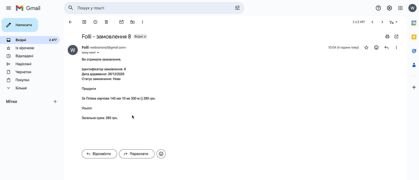 После сохранения настроек отправьте тестовое сообщение и убедитесь, что письмо успешно поступает на почтовый ящик Gmail.