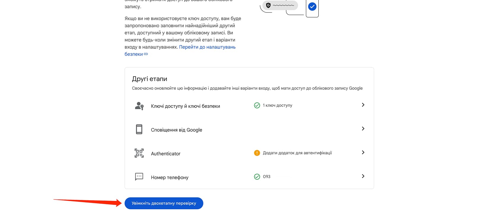 Если двухэтапная проверка уже настроена, этот шаг можно пропустить.
